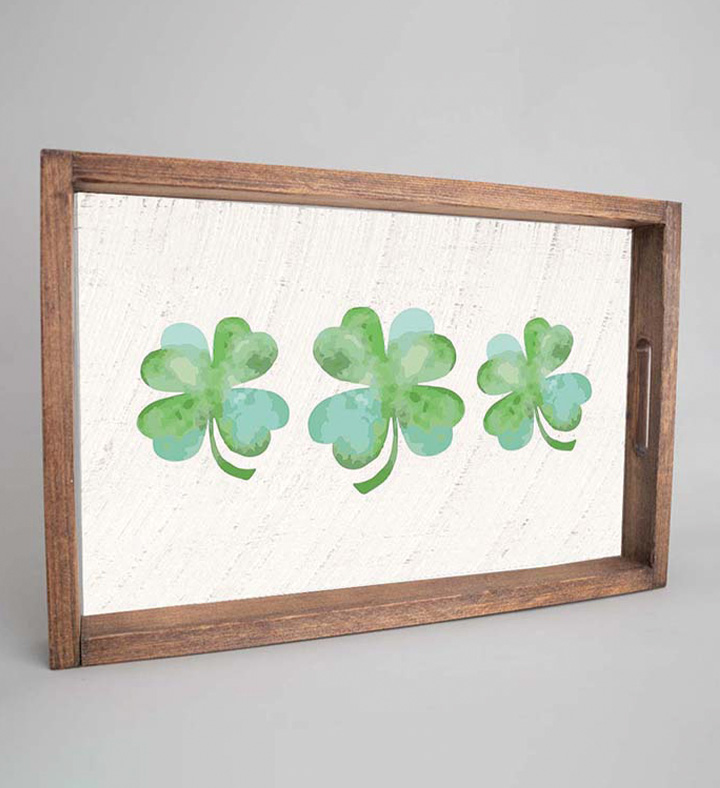 2. Watercolor Shamrocks Wooden Serving Tray