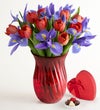 A bright, beautiful way to say “I love you.” We’ve gathered spectacular red tulips and blue irises for a Valentine’s surprise straight from the heart.
